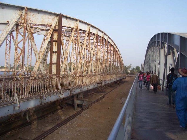 Steve and I enjoyed walking over it and through the town, which reminded us of a miniature and Africanized Manhattan: the cool buildings, a couple of art galleries. There are even some tourists — almost all French. I think the only Americans who come here are Peace Corps workers or their parents. We were amused when one tall shop owner approached us in the street and asked if we were French, then Belgian? English? German? Swedish? Swiss? He finally gave up, and when we confessed our true nationality, he smiled hugely and showed us the image of Barack Obama on his backpack.