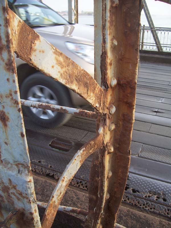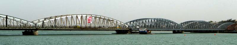The elegant lines of Gustav Eiffel's bridge evoke his more famous tower in Paris.The bridge is being replaced in sections, each faithful to Eiffel's design but employing moden materials.Corroded and buckling, Eiffel's original iron bridge could not be expected to stand much longer.