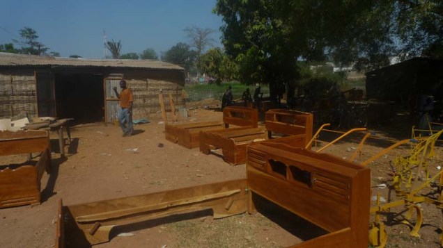 Kolda craftsmen carve wooden bed frames from African hardwoods.