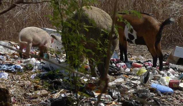 Livestock perform the first sorting of municipal trash in West Africa. The proliferation of plastic bags and bottle contributes to the waste problem.