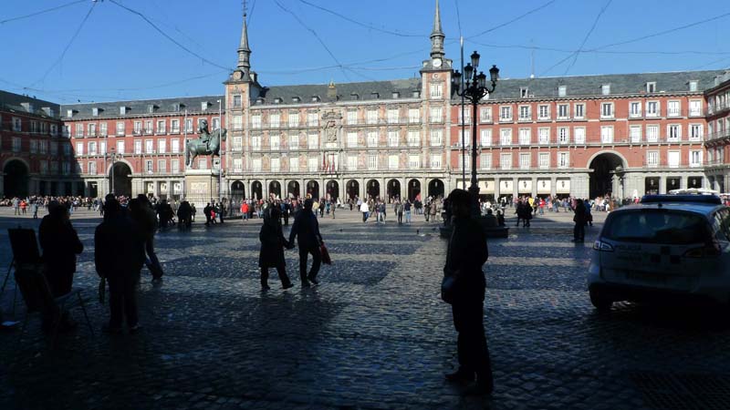 Plaza Mayor in Madrid is picturesque, but beware of pickpockets bearing flowers.