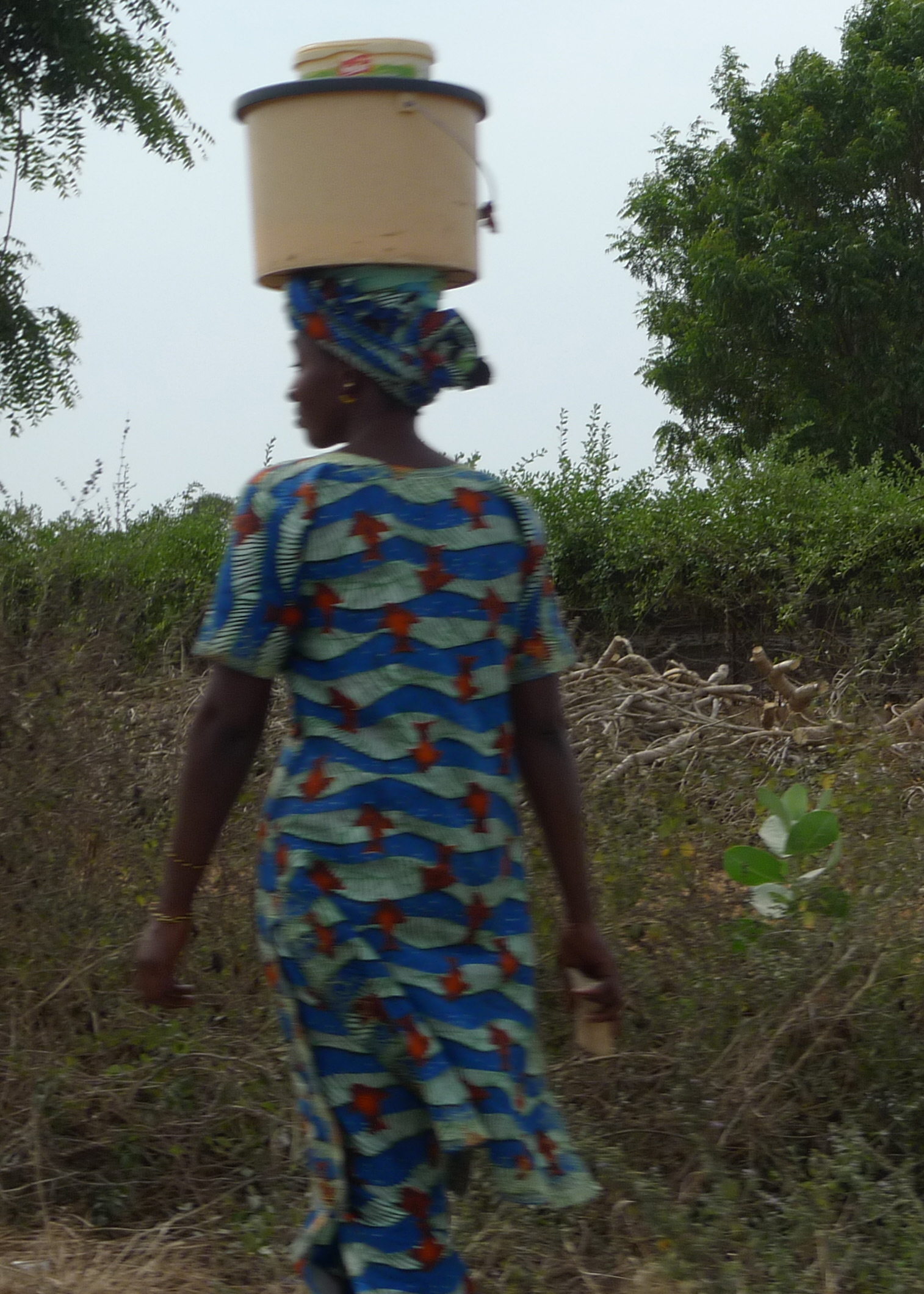 As always, as everywhere in the towns and villages, piles of garbage lined our paths. But it struck me as we walked that my relationship with the ubiquitous Afro-garbage is subtly changing. It seemed so ugly and squalid when I was first exposed to it. On some of our bush-taxi rides I’ve almost laughed out loud at the sight of one of our fellow travelers polishing off a can of soda or a cookie package and blithely tossing it out the window — so taboo back home (and yet ringing distant bells from my own childhood.)