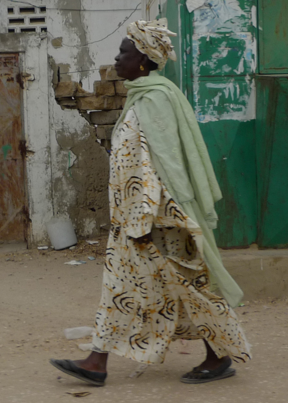She also pointed out that wearing Western garb — even drab, prosaic clothes such as those worn by most men — was seen as a sign of sophistication. But in a male-dominant society such as Senegal, the men were most apt to have access to that. Laura suggested that many women dressed as they did because it was their only option.