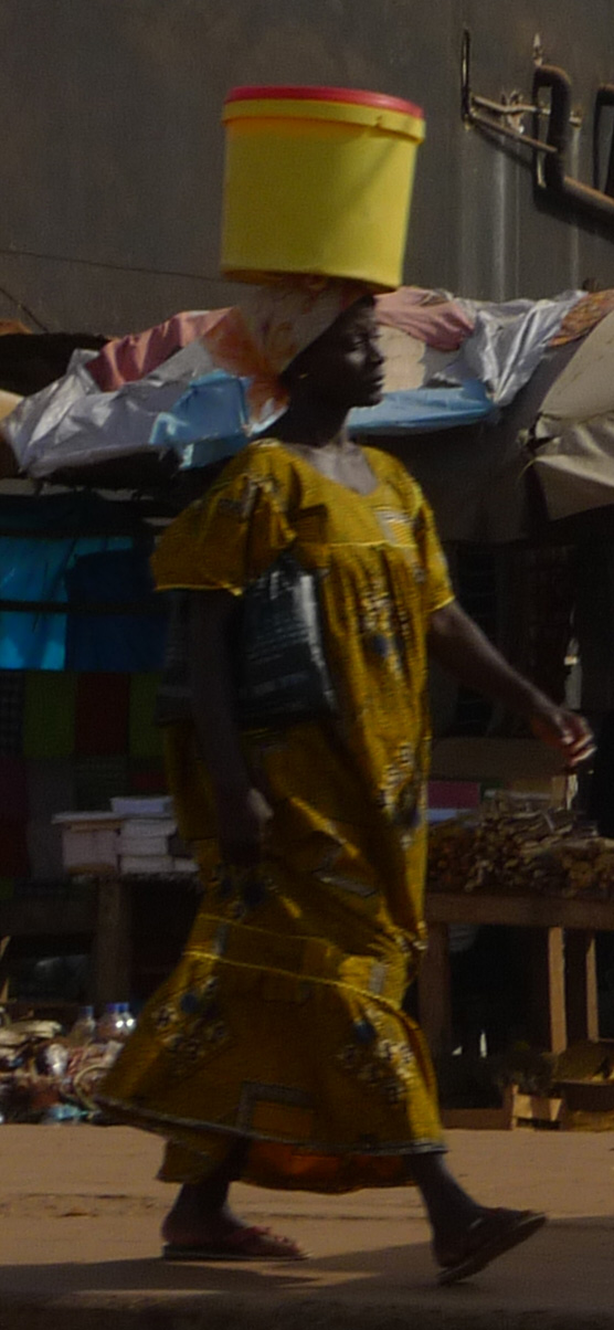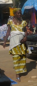 How ironic, we thought. In their outfits, the ladies looked to us like tropical birds. In the dreary, desperate looking country villages or the post-apocalyptic urban settings, they added splashes of color and theater that we, at least, applauded. It’s a challenge to take good photos of people in West Africa, but Steve became obsessed with trying to capture good photos of the ladies, such as the following: