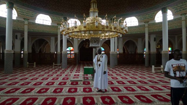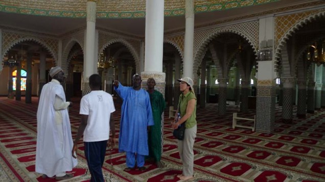 We’d read in the Rough Guide that Kaolack’s two principal “sights” were its covered central market (“one of the largest in all of West Africa,”) and its mosque. So the next morning we asked the friendly receptionist if he could help us secure a taxi to drive us to them and wait while we visited both. He called a young man named Moussa who arrived in a clean, well-maintained Toyota Echo and said he’d serve as our chauffeur for 10,000 CFA (roughly $21). We bargained this price down to half, then set off.