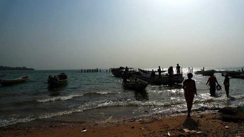 If we’d had one extra day here, I might have wanted to go out in pursuit of some of the magnificent fish inhabiting these waters. Or perhaps we would have tried a day excursion to the nearby island of Orango, where saltwater hippos congregate. But with only two days, we were content to stay on the island — exploring the squalid central village, lounging by Gille’s pool, napping, reading, writing. Today we biked (10 miles each way) to the endless unspoiled beach at the south end of the island. We’ll have one more excellent meal tonight, then we depart on the speedboat early tomorrow, rested up for another chaotic travel day, destination Kolda.
