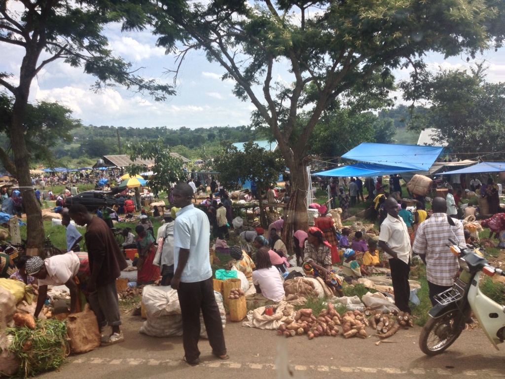 It’s physically breathtaking, maybe the most beautiful landscape I’ve seen anywhere: rolling hills and muscular mountains, crater lakes and deep valleys, and everything so green, a hundred shades of it. Unlike the Omo Valley in Ethiopia, this land is gaudily, opulently fertile, In the last two days, we’ve passed plantations growing a half dozen varieties of bananas, but also tea and coffee, as well as farmers growing pineapple, avocados, papaya, sorghum, watermelon, corn, mangos, beans, tobacco, tomatoes, cucumbers, vanilla, melons, and more, Robert says all the beef, chicken, fish, pork, rice, flour, oil (sunflower and corn), and virtually everything else we’ve been eating or will eat during our stay here was grown in this country the size of Oregon. Mixed in with the agricultural abundance, as if the land was so potently fecund it simply couldn’t control itself, are brilliant tropical flowers that attract jewel-like butterflies and more than a thousand (!) species of tropical birds.