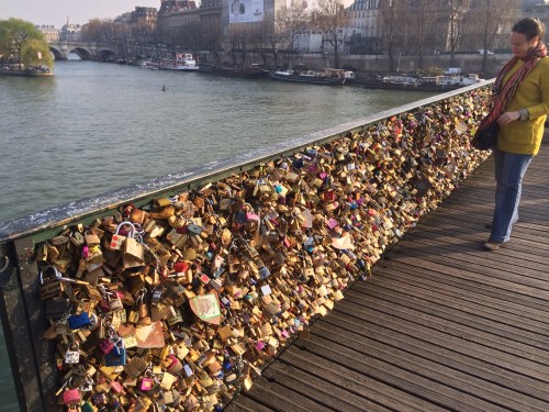 As is usually the case with travel adventures, Steve and I had dozens of other experiences on our recent trip that intrigued or edified or tantalyzed us. But I didn’t write about them because to be interested in most of it, you had to be there. The only remaining item I feel drawn to report on is our experience with the love locks of Paris.