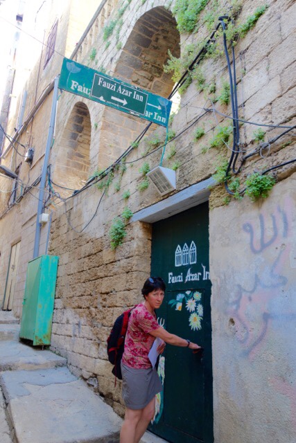I also read about an intriguing guesthouse when I was researching where to stay. Deep within the Old City, the Fauzi Azar Inn was once an elegant private home. I splurged and booked us one night there. (At $132, including breakfast, it was our most expensive lodging of the trip.) Although it’s a bit tricky to find, we reached it without too much stress, and when we opened the low metal door and ducked into the beautiful stone courtyard, we felt we had made the right choice.