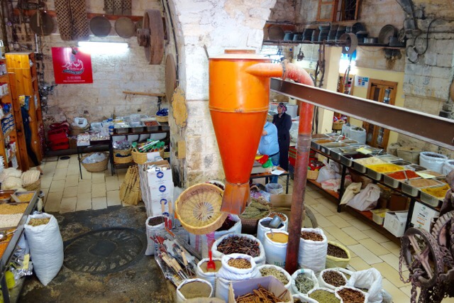 Born in Michigan, Hallel arrived in the Galillee six years ago and worked for some months as a guide on the Jesus Trail. But she’d fallen in love with the Inn and its principals and was willing to develop a non-political tour that would steer clear of conventional sights. Instead she wanted to give the inn’s guests a peek into the inner life of the community. It’s been a big success, but during the Gaza war last summer, tourism in Nazareth plunged so sharply almost all the staff was laid off. In addition to keeping up the tour-leading, Linda had worked for free as the Inn’s receptionist seven days a week for months. Now tourists finally were returning. The upturn in the Old City’s fortunes seemed evident as Hallel led us through the stone-lined passages for more than 2 hours. We spent time in the 100-plus-year-old spice shop that’s reputed to make the best zaa’atar (a Middle Eastern spice mix) in the world.