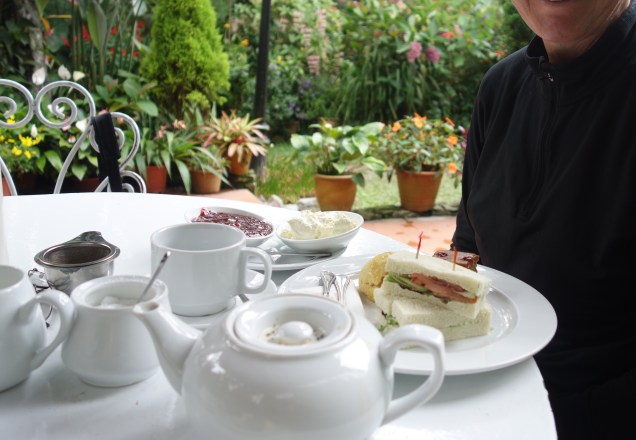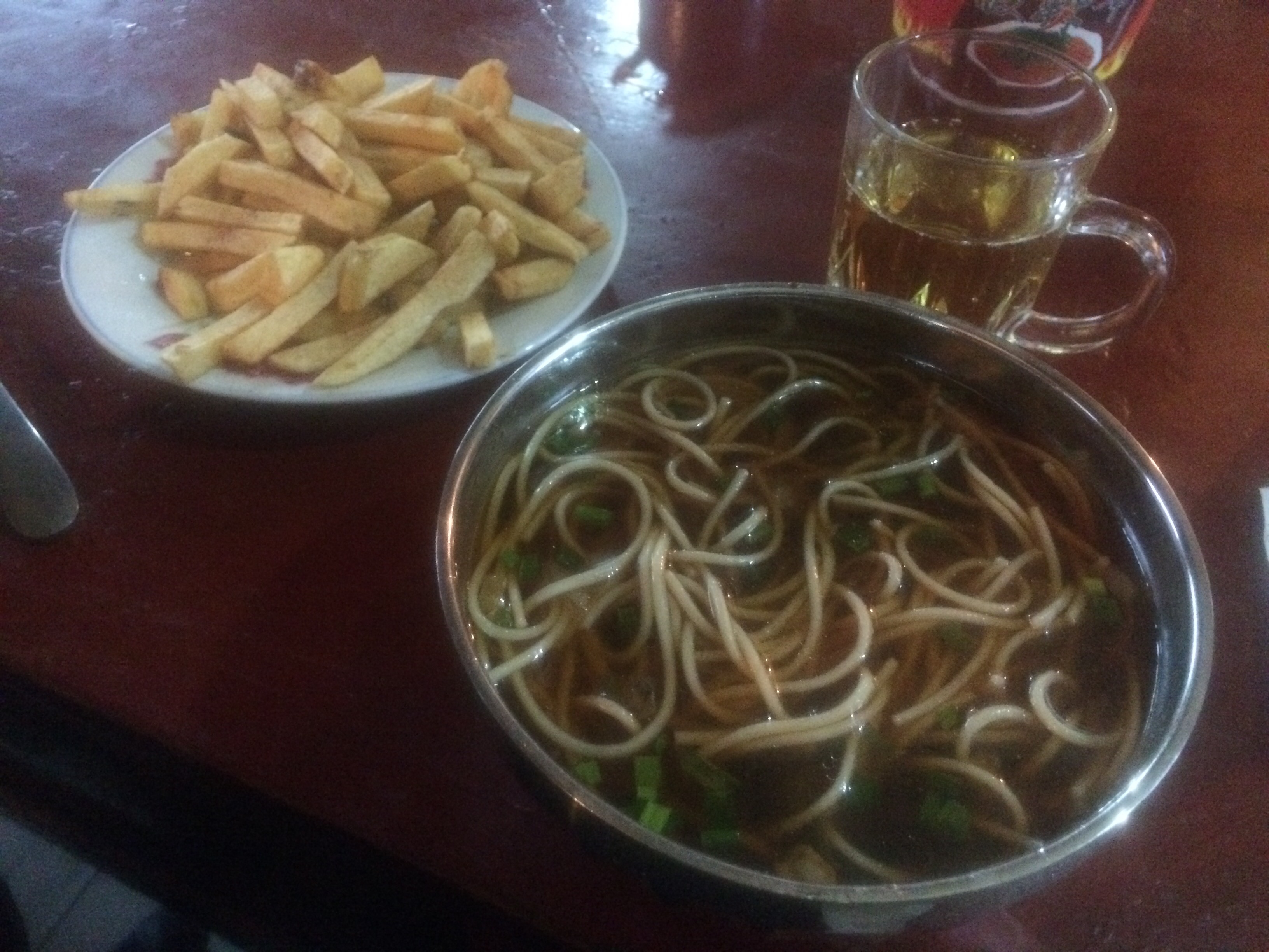 A bit further down the road, we passed a congregation of trucks and vans.Tashi declared that it was a Chinese filmmaking crew making a movie. We also were amused by the sight outside tiny roadside establishments of kettles of water surrounded by parabolic mirrors set up to catch the sun’s rays and keep the water hot — solar heating in the service of sanitation (and a steady source of hot water for tea).