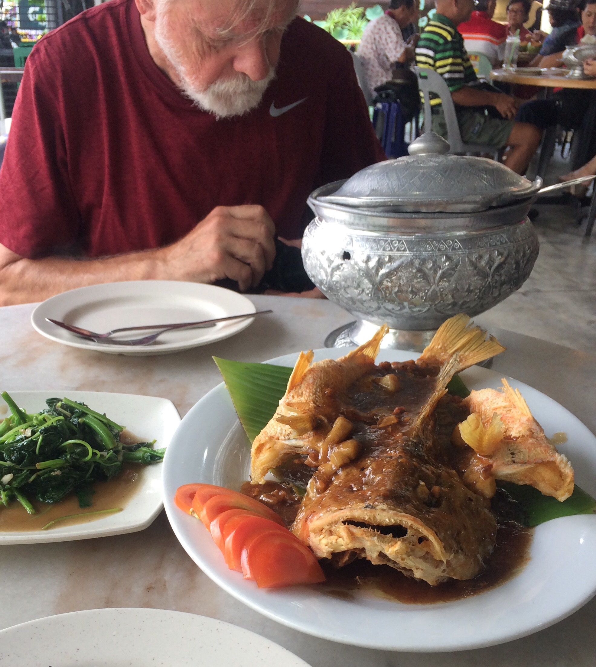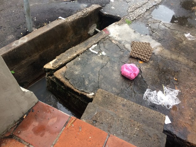 We failed to catch a photo of any of those, and I felt it would be intrusive to aim my camera at the old lady who walked across from where our van was waiting for one of the speed-control stops. She casually climbed down into the ditch next to the road and squatted. All I could see was her head and shoulders, but it was obvious she was hitching up her skirts and apron. She squatted in that position for a couple of minutes, craning her head to observe the infrequent passing traffic. Finally she re-arranged her skirts, climbed out of the ditch, re-crossed the road, and went back to stand near a small cluster of storefronts. If she washed her hands, I didn’t see that.