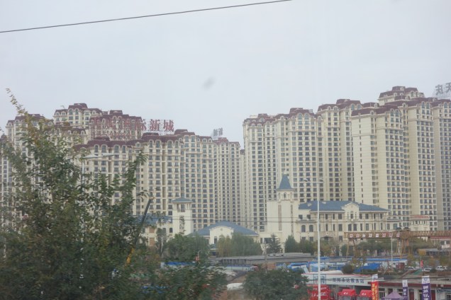 As charming as that is, the thing that makes our jaw drop over and over are the massive apartment buildings — 20 and 30 stories tall grouped together in clusters of 8 or 12 of 20. We scarcely go more than 5 minutes before seeing another mob of them, all the way from Xi’an to Beijing. It’s another glimpse of the reality of sharing life with 1.3 billion fellow countrymen.