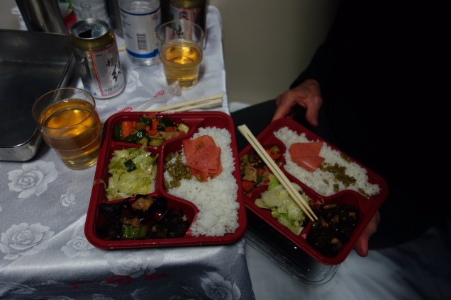 After some time, another train worker comes up to us and brusquely asks, “You want fish?”