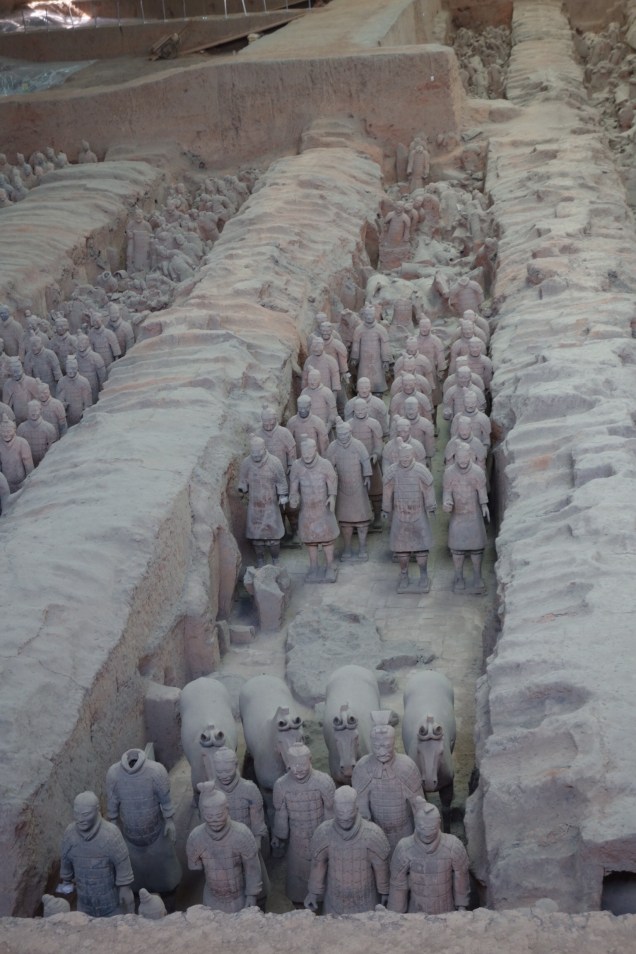 That guy, Emperor Qin (pronounced “Chin” — from whom the country’s present name derives) was a monster — both ruthless and stunningly cruel. He was also obsessed with immortality. According to the biography Steve read, at one point he ordered some of the country’s top scholars to find the secret to eternal life. When they failed, he had them 460 of them executed. If he had to go on to an afterlife, he was determined to rule as emperor there, and he reasoned that he would need a strong army to seize power. He ultimately decided to build and bury one — thousands of larger-than-life soldiers and archers and cavalrymen made of clay — near where his own body would eventually be interred. The artists who created them produced beautiful work, but if the emperor was impressed, he had a funny way of showing it. He killed them too (and buried them with the terra-cotta army.)