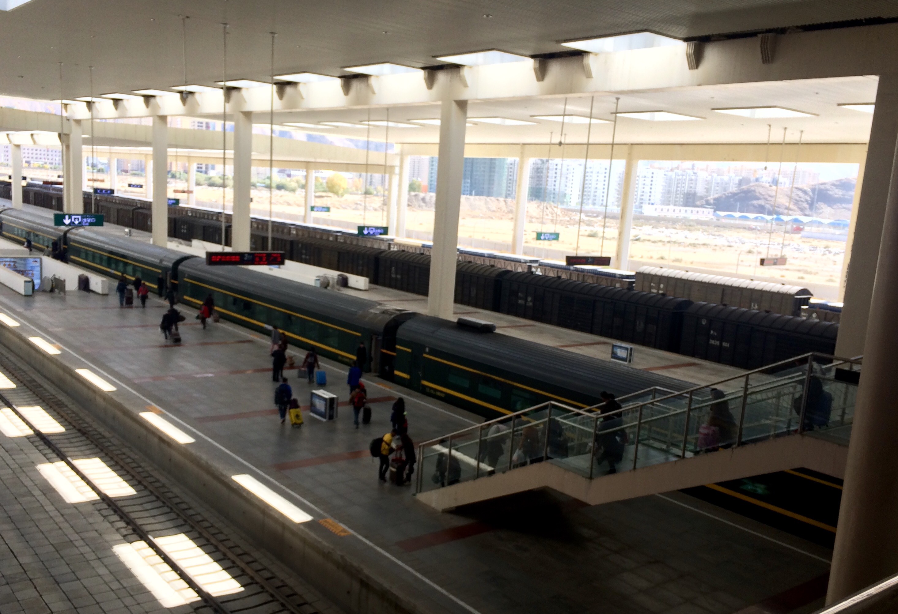 Rushing toward the train in Lhasa station. Don’t want to miss getting a space for our suitcases!