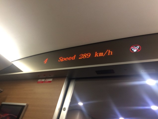We find our boarding gate with plenty of time to spare, and settle into our second-class seats on the bullet train. It looks a lot like its counterparts in Europe, and soon we’re ramping up to speeds of about 180 miles an hour.