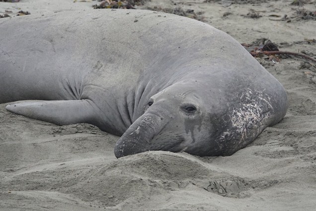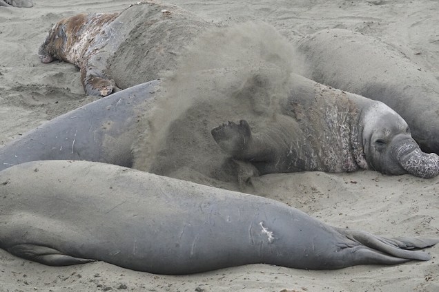 About 4 miles past Hearst Castle, we stopped to see the colony of Elephant seals at Piedras Blancas. They’re so much more huge than our local seals and sea lions; they astonished and delighted us.