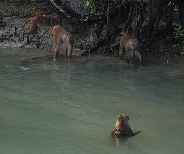Macaques. We watched this group chase the one guy into the water. They seemed to be mad at him.