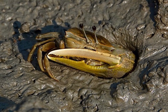 This is a yellow fiddler crab. Don’t you love his eyes?