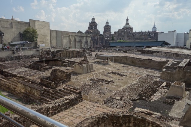 The biggest outer pyramid, which honored the war god Huitzilopochtli and the rain god Tlaloc, is gone. But you can clearly see the remains of what it once sheltered: about a dozen levels of construction dating from 1375 to 1519. You can stare at the double staircase where the bodies of human sacrificial victims were thrown down the steps after their hearts were ripped out. An impressive museum fills in a lot of the details, gory and otherwise. The power and scale of what once filled this space are unmistakable. It made me happy to see two of the main cultures that shaped this country co-existing more equitably.