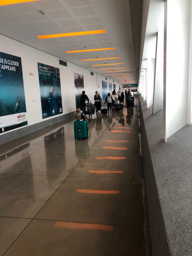 It took us just minutes to buy our one-way tickets ($20 per person) to walk across the bridge and obtain our Mexican visas (from a high-tech kiosk). We scanned the bridge ticket and our boarding pass at a gate that opened for us automatically. Then we strolled over and above that pesky border between the two countries. The passage couldn’t have taken even five minutes.