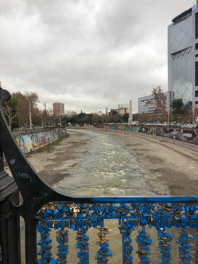 Our first 24 hours in Santiago started off uncomfortably and then went downhill. I felt elated when our Avianca flight from Mexico City arrived about 8:20 pm Sunday — a bit early. But then we had to spend 40 minutes in line to get a simple entry stamp in our passports. We felt happy again to find our bags (which we checked, due to their weight) waiting for us on a moving carousel. After collecting them, we made our way through a gauntlet of some of the most aggressive taxi drivers I’ve confronted anywhere. I had studied up on the best way to take an Uber from the airport into the city, a move reported to be difficult because the taxi drivers hate the Uberfolk so much they sometimes physically attack them. I’d found (and photocopied) one detailed blog post that counseled going to the short-term parking lot next to the Holiday Inn across the street from the airport. Uber drivers could pick up passengers there without being harassed, this writer reported. But when Steve and I tried to follow his directions, we failed epically. The driver we were connected with texted us (in Spanish) that he could not get into that parking lot. He suggested meeting us elsewhere, but we couldn’t figure out where he was talking about. Finally, 20 minutes later, exhausted and irritated, we gave up and instead paid for a pre-paid taxi that turned out to be fast and efficient (if $10 more expensive than an Uber ride probably would have been.)