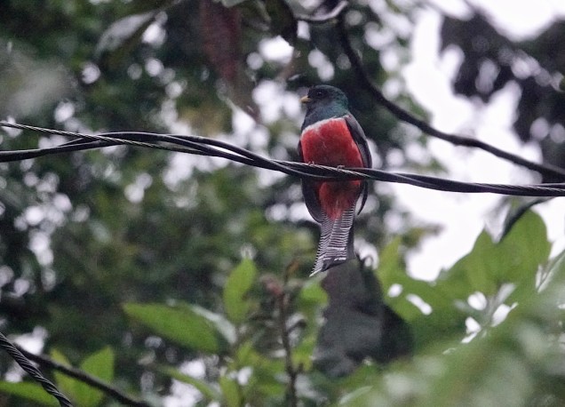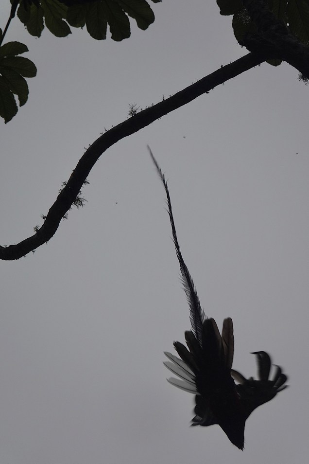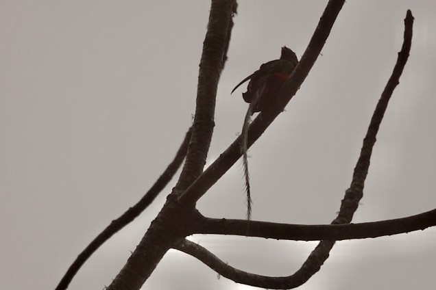I stared at that tail and the manager yelled. The steely early morning light made it hard to make out the bird’s brilliant red chest, but the tail looked like nothing I’d ever seen on a bird before: unmistakably a quetzal, Alfredo and the manager concurred.