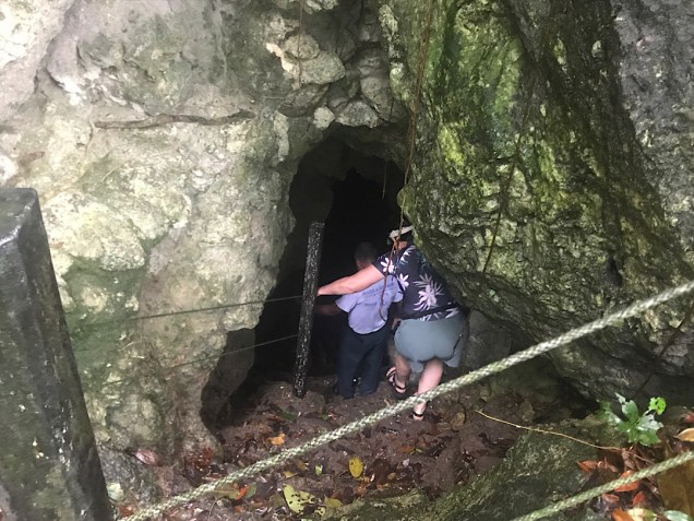 and he guided us up and down a plunging path to a creepy cave and natural sauna warmed by hot springs.