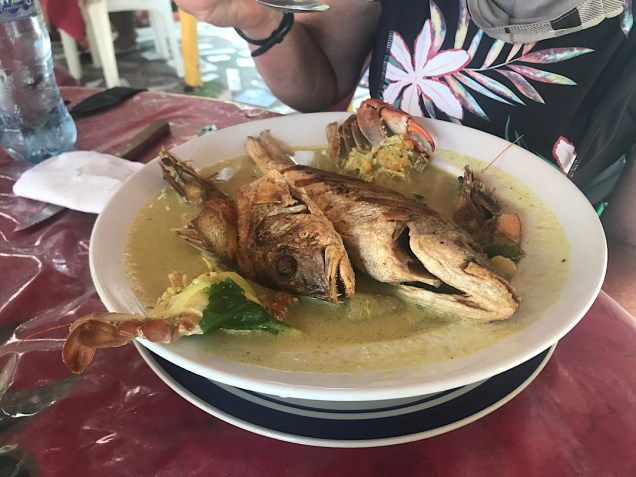 Two stories tall, both levels of the house had high ceilings and a gracious layout. It appeared to be more or less clean, but any 70-plus-year-old building set on the edge of a steamy jungle is bound to look and feel a bit grimy. I wondered how many exotic spiders and snakes and centipedes might be staying there with us. Omar gave us vague directions to the only eatery in town, and somehow we made our way to it in what by then was complete darkness. My heart sank at the sight of the garishly lit storefront, open to the street, no customers evident.