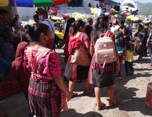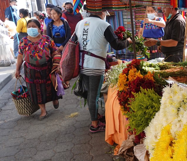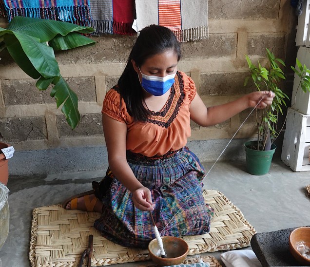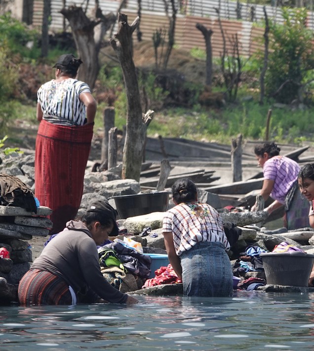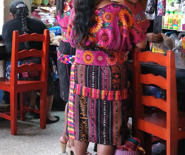 Friday, Steve and I visited three of the villages situated on the lakeshore not far from La Casa. Our guide was Alex, 29 (whose Mayan name I forgot to write down.) He and his three siblings first learned Tzutujil, one of the 23 Mayan languages. But all his classes in school were taught in Spanish, by government mandate, so the Mayans are also fluent in that. About 5 years ago, when Alex decided to become a tour guide, he learned to speak English (well) in an intensive program in Guatemala City to which he got a scholarship. These days he’s studying Hebrew because so many Israelis come to Guatemala on vacation (and to start businesses, like this one).