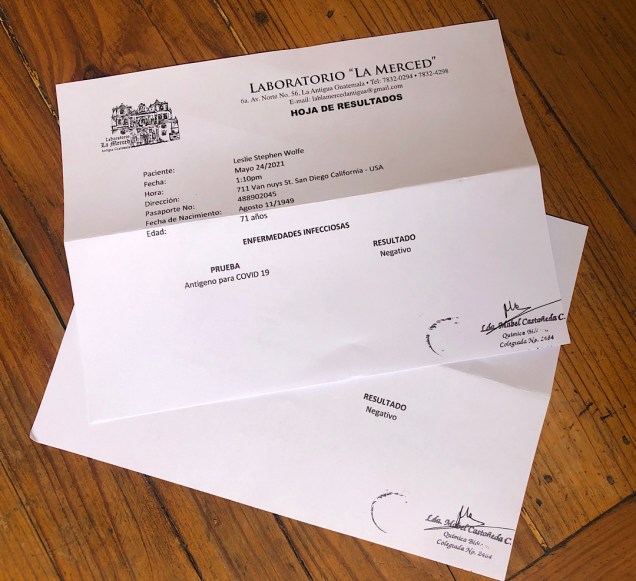 We were instructed to return in a half-hour for the results. We got coffee at a nearby cafe, then went back. Another tug on the bell; another confrontation with the inhospitable receptionist. She didn’t say a word but pulled out two pieces of paper and began folding them.