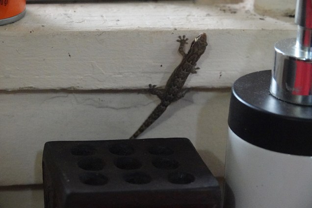 Friday we packed up and left Jorge’s place, happy in the end to have had our three nights there. (As it turned out, the only jungly creature who joined us was this two-inch-long lizard, who seemed to live in the kitchen.)