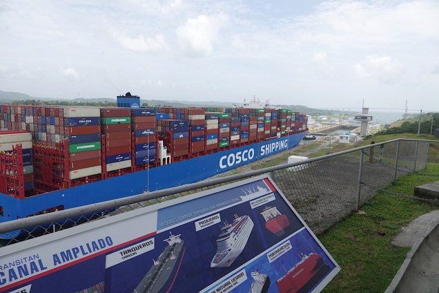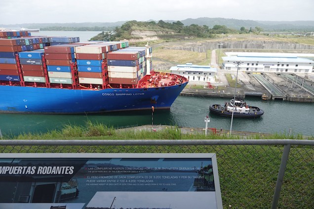 When we arrived there Thursday morning, we learned that a big part of this center also was still closed (our entrance tickets were discounted, as a result.) But we were able to enter the huge, modern observation platform, where we watched a gigantic container ship from Hong Kong approach and enter the first of the three sets of locks that step boats down to the level of the Caribbean Sea.