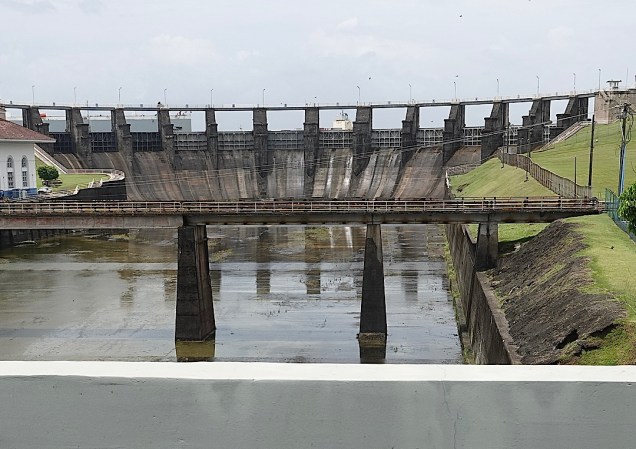 These were the new locks opened in 2016, financed in part by Japanese and Europeans, that accommodate ships far larger than the original locks. Those are still operating, and about two dozen tankers and car carriers and smaller container vessels and other ships pass through each day. Although we couldn’t get close to the old locks, after we left Agua Clara we drove around some more and eventually found the nearby dam that created one of the essential components of the canal, Gatun Lake, at the time of its creation the largest man-made body of water in the world.