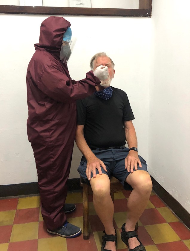 Monday morning promptly at 7, we walked the few blocks to the clinic. Iron bars blocked entrance into its unprepossessing foyer, and for a moment we wondered if it was closed. Then I noticed a cord attached to a bell behind the bars. I reached through and yanked. A moment later, the gate buzzed. We pushed our way in.