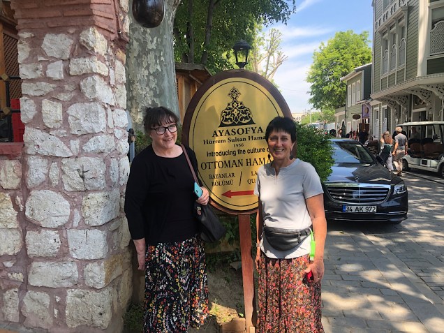 But we pressed on and eventually reached Sultanahmet Square, the beautiful plaza that once was the site of the Roman emperors’ palace and today is flanked by two of the world’s most spectacular religious structures (Hagia Sophia and the Blue Mosque.) We grabbed a casual lunch, then Virginia and I checked in for our cleaning extravaganza.
