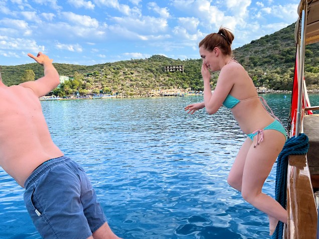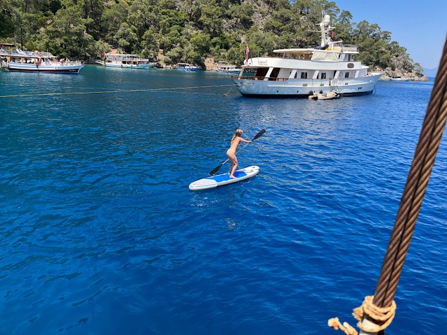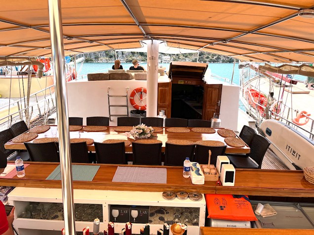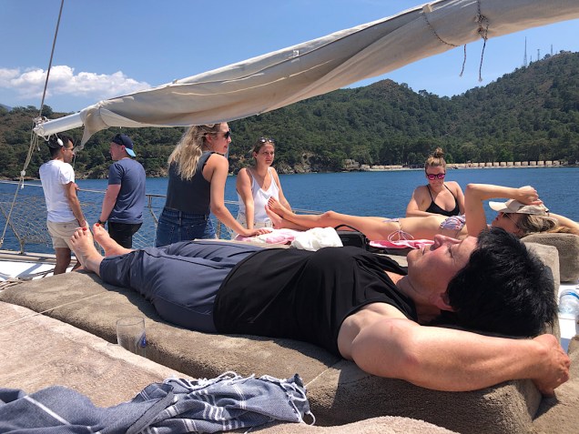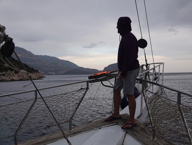 Less than 24 hours have passed since we were cruising the Mediterranean on a 90-foot-long wooden sailing ship. Yet somehow I can’t quite remember what I did between the time I woke up yesterday and our disembarkation 7 or 8 hours later. I know we ate breakfast. Later came a light lunch. I know I spent time laying on the velour-covered foam mattresses laid out on the rooftops over the main salon and the fo’c’sle. Rocked gently by the boat’s forward motion through the swells, I didn’t sleep. It felt more like a dream, an existence untethered from time.