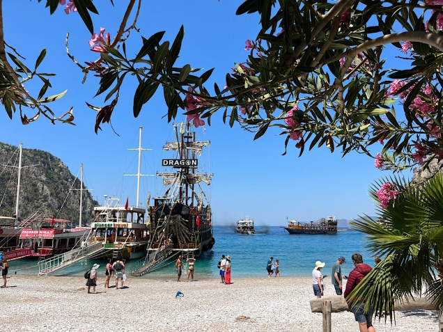 If YOU heard about a place where a Greek god had battled with and slain a female monster and, commemorating this victory, the mountain spouted flames — and they had continued burning for more than 2000 years… would you be able to resist going to see it? I couldn’t. The burning mountain is Mt. Chimaera; it’s near the towns people stay in before embarking on an sailing trip along Turkey’s Turquoise Coast.