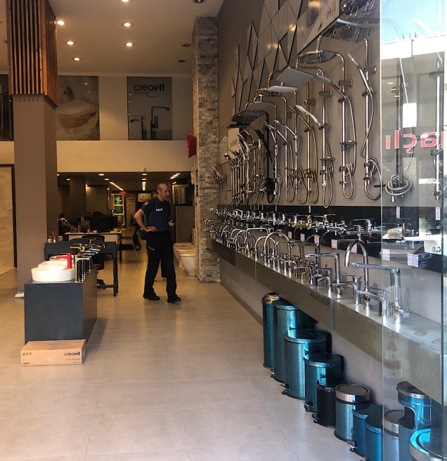 The Bugday is a well-rated business hotel located only a short taxi ride from the train station. It cost $42 a night for our comfortable, immaculate room and lavish breakfast each morning. What I didn’t realize, though, when I reserved a room is that the neighborhood around it is a home-remodeling Mecca, filled with block after block of shops selling plumbing fixtures, wallpaper, paint, brushes, bathtubs, urinals, ceramic tile — like some vast Home Depot broken up into individual vendors.