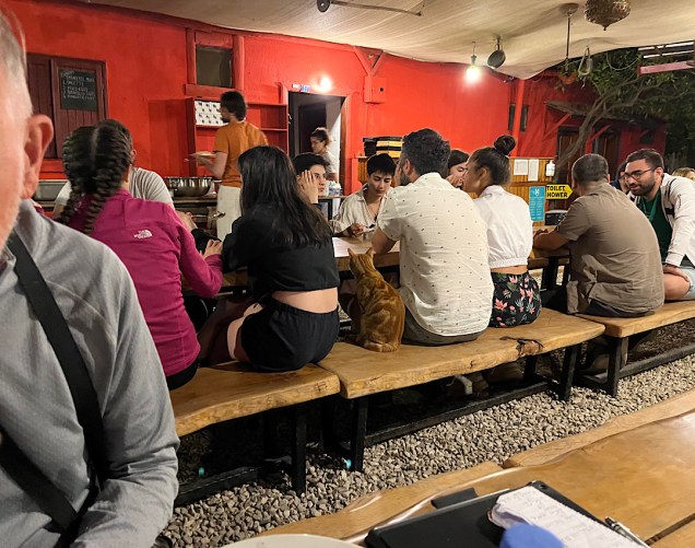 I’d given up, but Steve wanted to double check. He was all but panting when he came back with the news that a van would be leaving in just 15 minutes, promptly at 9 pm. We threw our walking sticks and sweaters and flashlights into the daypack, then piled on the vehicle, happy to find another couple already aboard. We picked up two more couples at a nearby hotel, then barreled into the darkness.