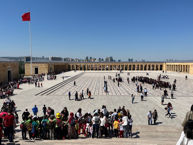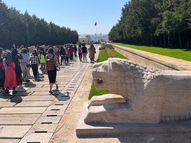 Thursday morning (5/26), we taxied to the first Major Attraction, Ataturk’s Mausoleum. Mustafa Kemal Ataturk, as anyone here will tell you, was the father of modern Turkey. Bold, intelligent, and charismatic, he led the resistance movement against the Ottoman sultanate and later, the Greek invaders, and in 1923 became the first president of the new Turkish republic. He spent the rest of his (relatively short) life working to transform the place from a medieval theocracy into the modern, secular, industrial powerhouse it eventually became. It was he who moved the capital from Istanbul to Ankara. Over the years, I have visited some of the most impressive tombs on the planet — Mao’s on Tienanmen Square, the Taj Mahal, Lenin’s final resting place in Moscow, Ho Chi Minh’s in Hanoi — and the complex containing Ataturk’s body ranks among them.