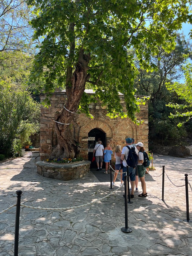 The Catholic Church says it was somewhere near the house that the body of the elderly Virgin was lifted off the ground and physically assumed into heaven. Catholics all over the world celebrate this event every August 15. But we found not a single plaque on the site mentioning it.