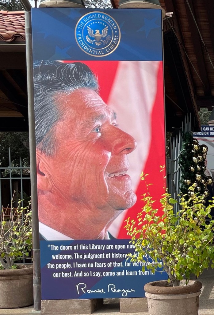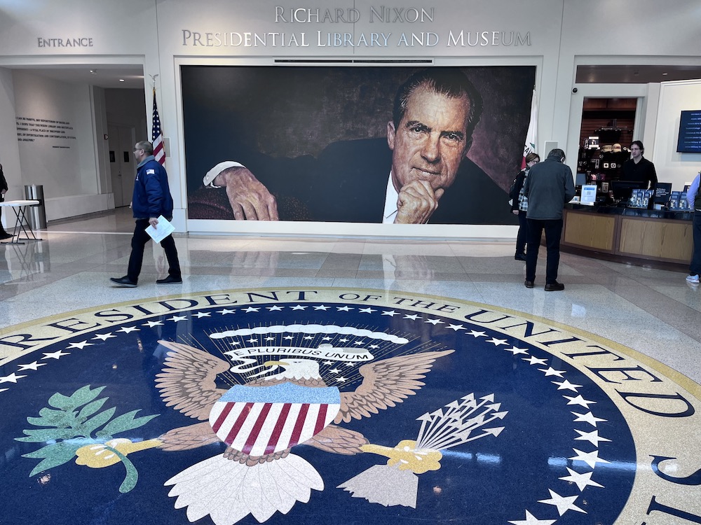 I probably never would have visited the Presidential Libraries in Southern California were it not for our friends Donna and Mike Guthrie. Donna is an imaginative traveler with a passion for big creative projects. To name just one, she and Mike recently visited every National Park in anticipation of a big birthday. Among their current missions, they are targeting all the Presidential Libraries. They started with Harry Truman’s (in Independence, MO) and Lyndon Johnson’s (in Austin, TX), then suggested that a few friends from San Diego might accompany them on a short excursion to all (two) of California’s Presidential Libraries. Steve and I privately wondered how much fun this would be. Those facilities celebrate the lives and administrations of Richard Nixon and Ronald Reagan, neither of whom we ever came close to idolizing. But we assented, and the experience surprised us.