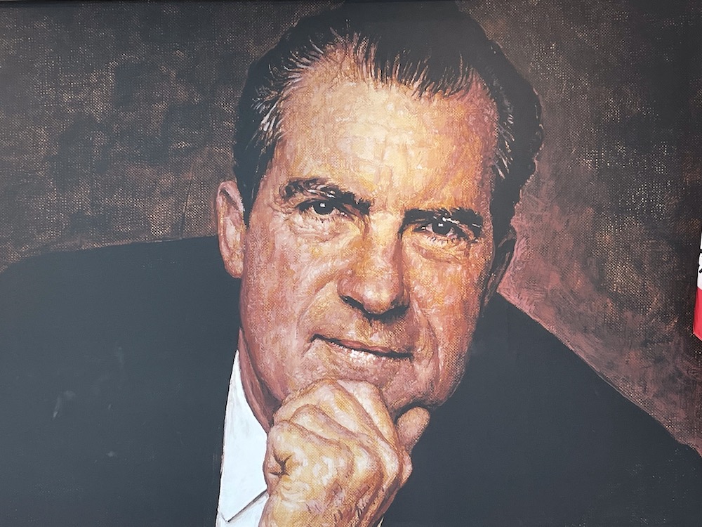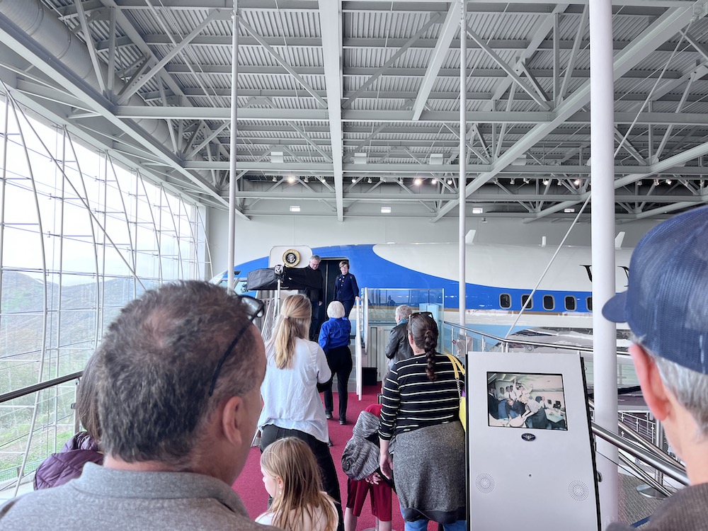 No one in our little group was ever much of a Nixon fan, and we’d thought we might breeze through the complex in an hour. To our surprise, we wound up staying for almost three hours and concluding it was the better of the two sites. The years when Nixon sat at the highest levels of American political power were at least as epic as the Reagan’ years, and the displays seemed better organized and more coherent. Moreover, the Nixon facility feels less hagiographic, more balanced, with extensive attention given to the Watergate break-in, the subsequent cover-up, and Nixon’s resignation in disgrace. No presidential aircraft live here, but in this Oval Office replica — decorated as it was when Nixon occupied it — no rope barriers prevent guests from strolling up to the replica of the room’s famous Resolute Desk and taking the helm, if just for a moment.