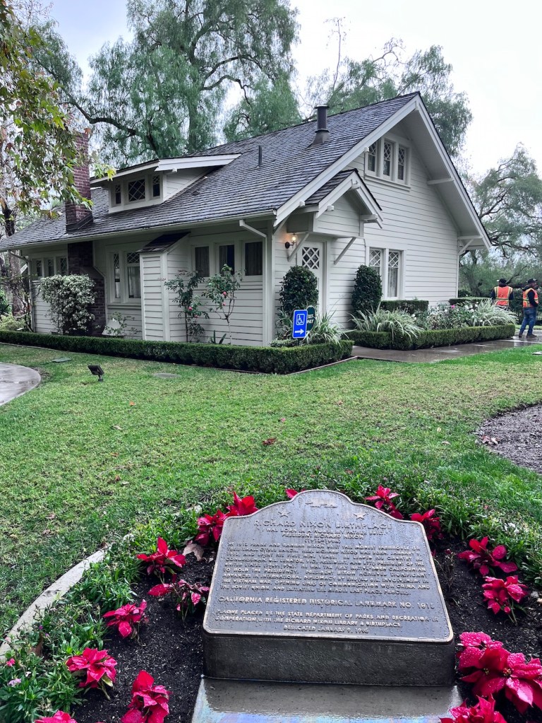After touring the Reagan site, we spent the night in Pasadena, then headed south the next day with Yorba Linda programmed into our Google maps. It was on a modest Yorba Linda ranch that Nixon’s father erected a home for his young family, using a mail-order construction kit. A year later the Nixons’ second son, Richard, was born in the building. It’s way too small to hold a Presidential Library; the large museum/library structure lies just a short walk away. But having the family home located on the property somehow makes it feel intimate and meaningful.