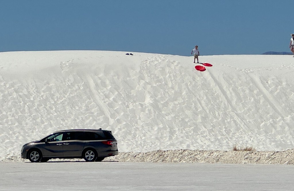 Nice try. Spending time in the ruins of Chaco Canyon (above) and among Sedona’s red rocks; jouncing through Canyon de Chelly and ogling fake aliens in Roswell all rewarded us richly (as I recorded in my earlier posts.) We also fared well on the drive back, even if White Sands National Park somewhat underwhelmed me.