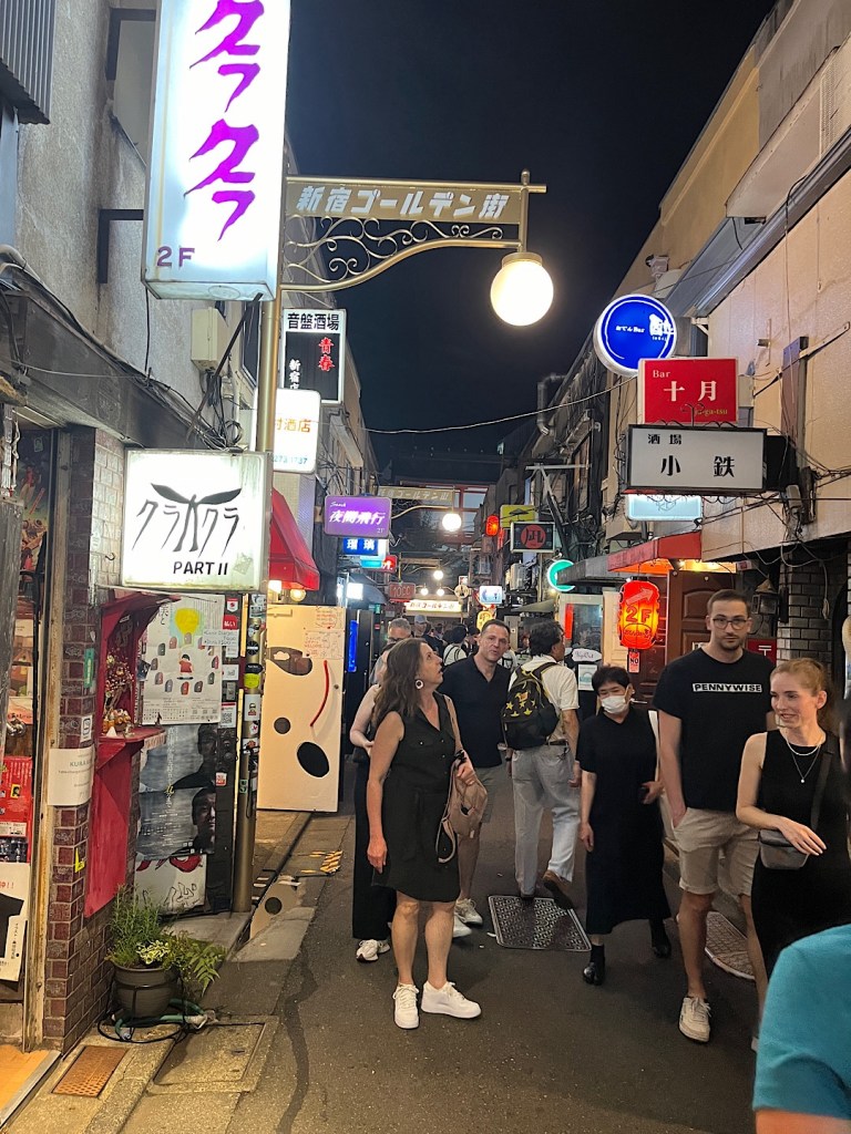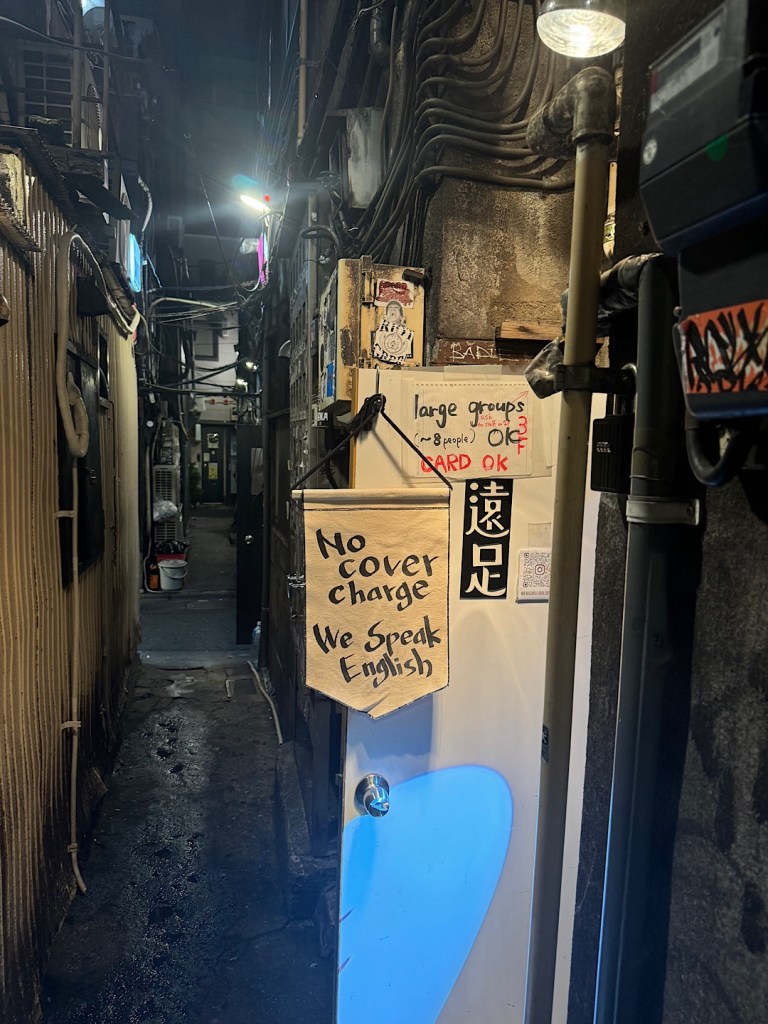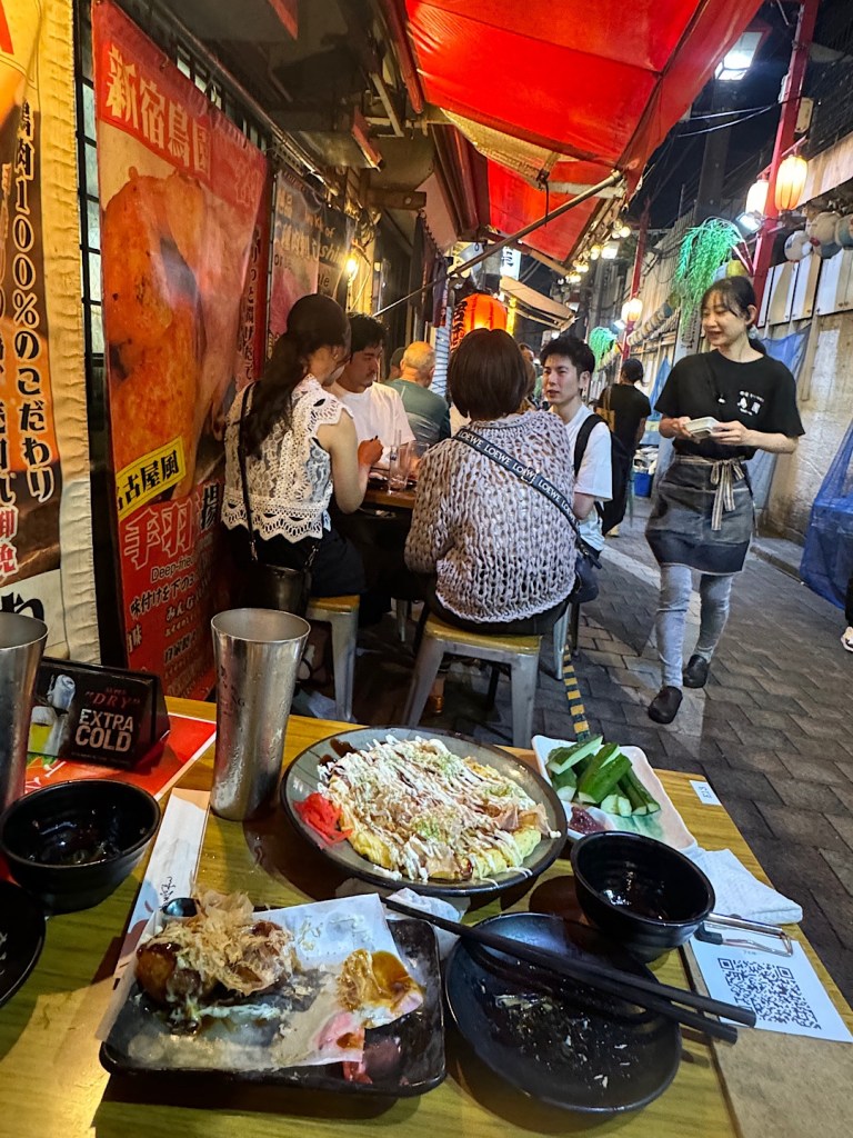 Steve and I quickly found a seat at a table on the sidewalk.We couldn’t resist ordering some of those octopus balls. They were stunningly delicious.We wandered some more after dinner. The “Golden Gai” area is as close as you can get to the world of the Midnight Diner and its master chef.