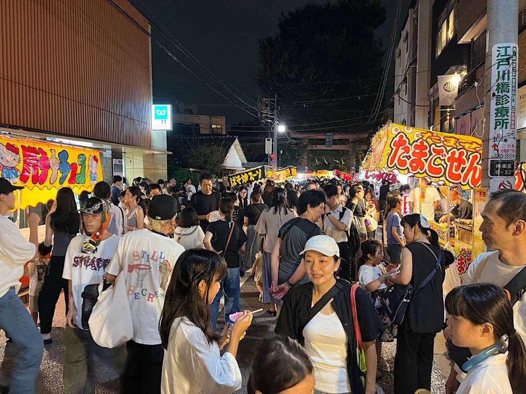 Most Japanese will tell you they’re not religious. But they sure do love a good shrine festival. Both Saturday and Sunday afternoon and evenings, the streets leading to Akagi Shrine (just a five-minute walk from our hotel) were jammed with folks of all ages; their good mood was contagious.