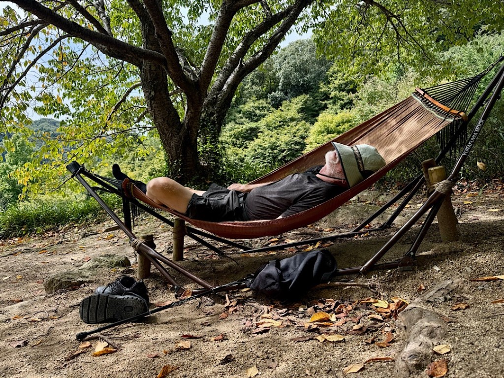 Steve and I were staying in the town of Miyoshi, a base for tourist activities in the area: hiking and mountain climbing. Bathing in hot springs. Walking across bridges that historians think are 800 to 1200 years old, built entirely from vines and planks.